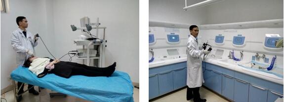 随着科技的发展,电子喉镜是一种新型的耳鼻咽喉疾病诊断治疗工具,近年来用于临床的一种新型软性喉镜,手术操作和纤维喉镜下手术相似。其突出的优点是图像清晰,手术操作比间接喉镜和纤维喉镜下手术精确。作为第3代光导纤维喉镜,其高分辨率及图像逼真度是间接喉镜、纤维喉镜不可比拟的,大大提高了疾病诊断的正确性。而且电子喉镜管镜细小(跟目前我院医用棉差不多粗细),柔软且易弯曲,导光性能好,冷光源照明亮度强,视野清晰,可以观察到鼻腔、鼻咽部、外耳道、喉部乃至前、后联合、声门下及气管等部位的病变,并且可以通过血管成像进行癌前病变早期筛查和肿瘤范围的大致评估,所采集的图像可保存于电脑中,利于日后病情分析和临床资料的积累。对声带息肉、声带小结和喉异物一次性治愈率可达90%以上,通过比较手术前后的图文报告,可增加医患之间的沟通。对于耳鼓膜外伤者,通过电耳镜虽然可明确诊断,但电耳镜图像不能保存和打印,而电子喉镜能将鼓膜外伤的图像打印出来,提供客观证据,对司法鉴定尤为重要。