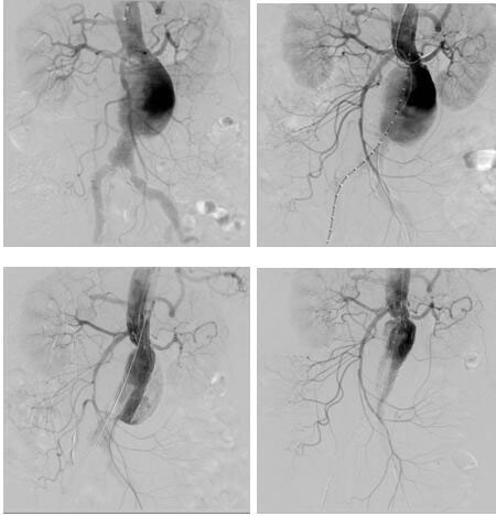 日前,血管介入科为一位患肾下复杂型腹主动脉瘤(左肾动脉距离瘤体仅4mm)74岁老年女性完成肾动脉烟囱+腹主动脉瘤覆膜支架腔内隔绝术,术后恢复良好。该患者基础疾病多,已经出现腹痛症状,腹主动脉瘤瘤体随时有破裂风险,但左肾动脉距离瘤体仅4mm,采取传统开放手术(腹主动脉瘤切除+Y型人工血管置换+左肾动脉转流术)手术创伤大,手术风险高,经血管外科治疗团队反复研究病例,并在院领导支持下,决定采取腔内治疗:先经肱动脉穿刺置鞘于左肾动脉留置导丝,再经双侧股动脉上导丝导管造影定位,在施放腹主动脉主体支架前先经左肱动脉留置导丝导引下于左肾动脉置入VIABAHN支架保证左肾动脉供血,再释放腹主动脉主体支架,解决了左肾动脉距离瘤体过近的问题。该例手术的完成,标志着我院在腹主动脉瘤的腔内治疗跨入省内领先行列。