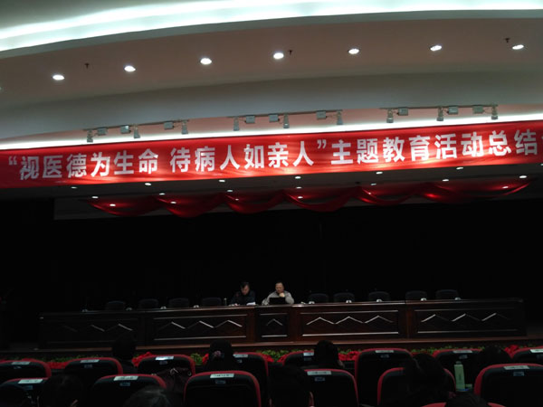 为对“视医德为生命,待病人如亲人”主题教育活动进行全面总结,巩固活动成果,拓展下一步活动,2月1日下午,我院在门诊大楼21楼大会议室召开“视医德为生命,待病人如亲人”主题教育活动总结会议。院长申惠龙出席并讲话,党委书记肖友儒主持会议。院领导及全院中层干部300多人参会。