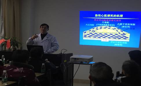 活动现场座无虚席,衡阳市中心医院医务部长、心内科主任柏太柱用PPT形式给病友们讲述了急性心梗的症状、部位、特点等等,巧妙地把专业知识用通俗易懂的语言传述给病友们,对心梗知识有了更深入的了解,意识到了急性心梗抢救的第一道关也是最关键的一关掌握在自己手里,也掌握了在120来之前的自救方法。